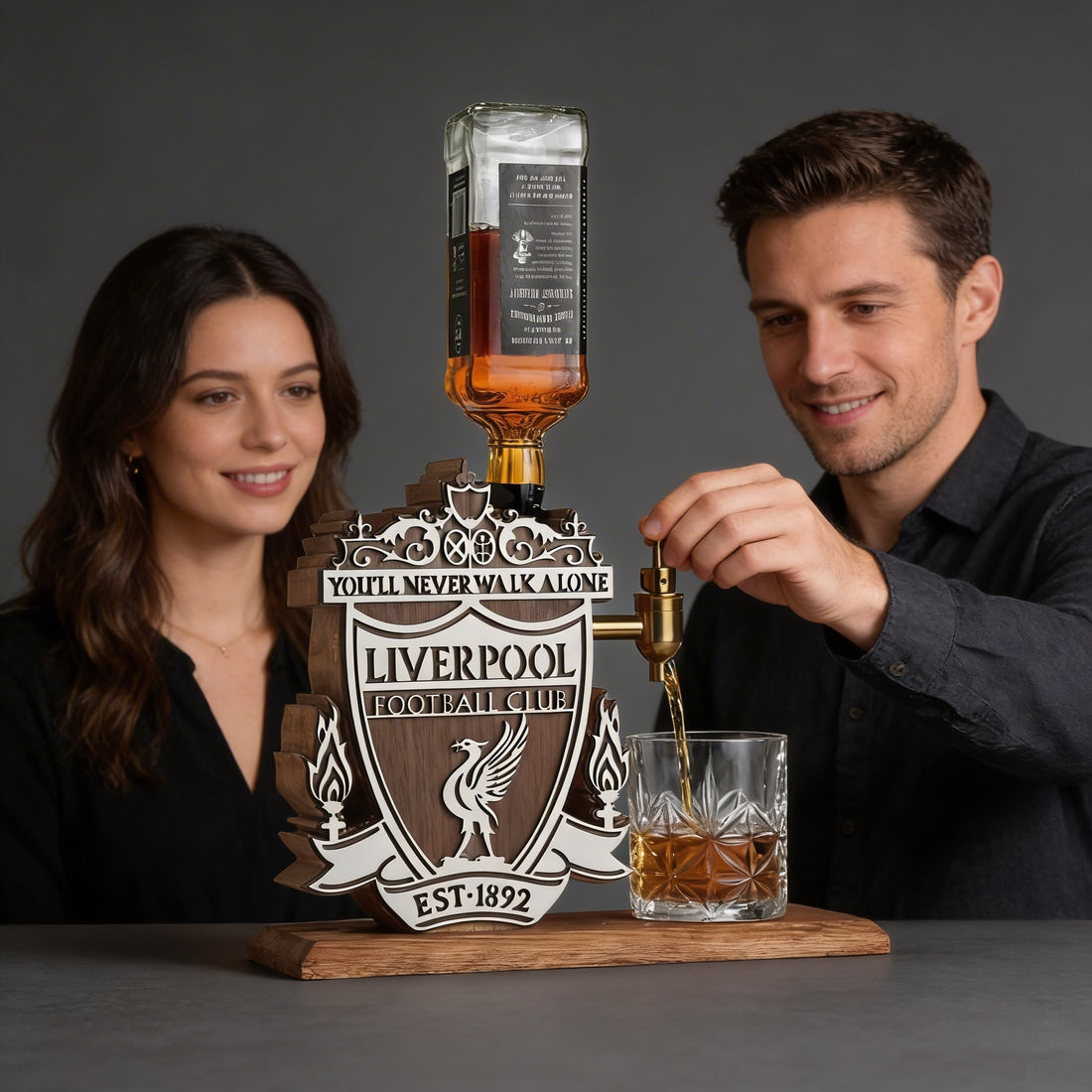 Whether you prefer a fully personalized design with a custom name or message, or a bold edition featuring his favorite football club logo — each whiskey dispenser is made to reflect passion and personality.